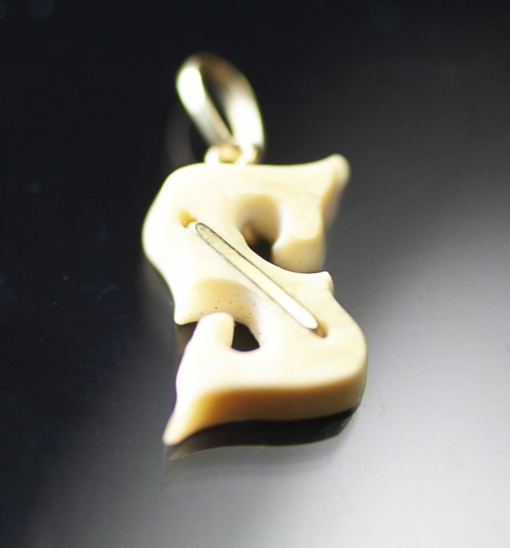 PINGENTE, LETRA " S " EM RESINA COM DETALHES EM OURO 18 K |