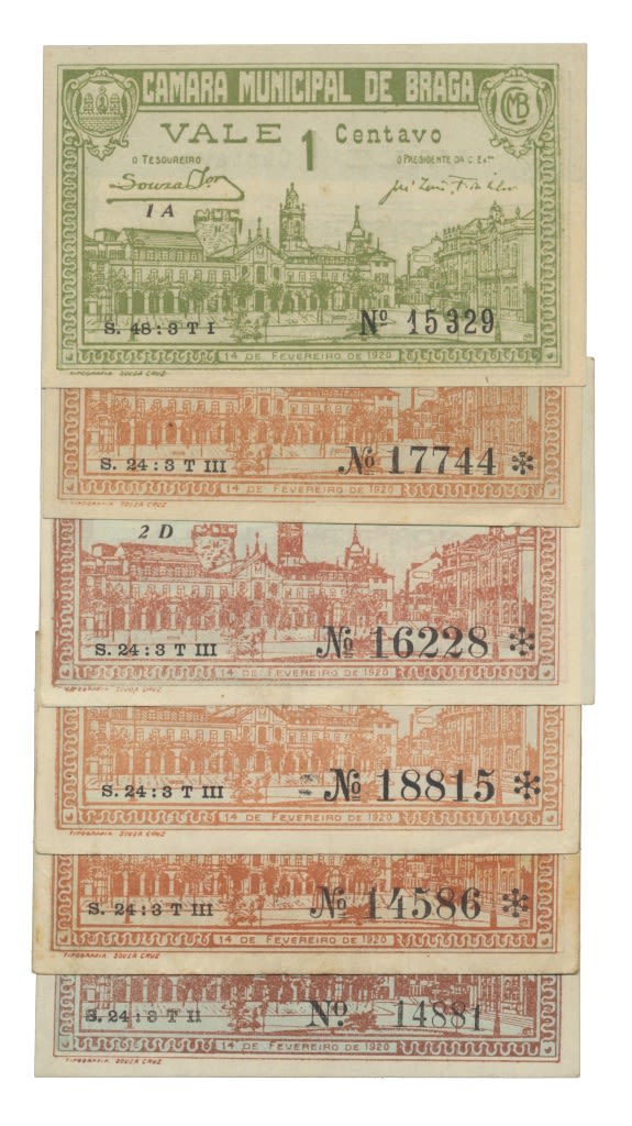 Cédula - 6 expl. Braga 1, 2 (5) Centavos 1920