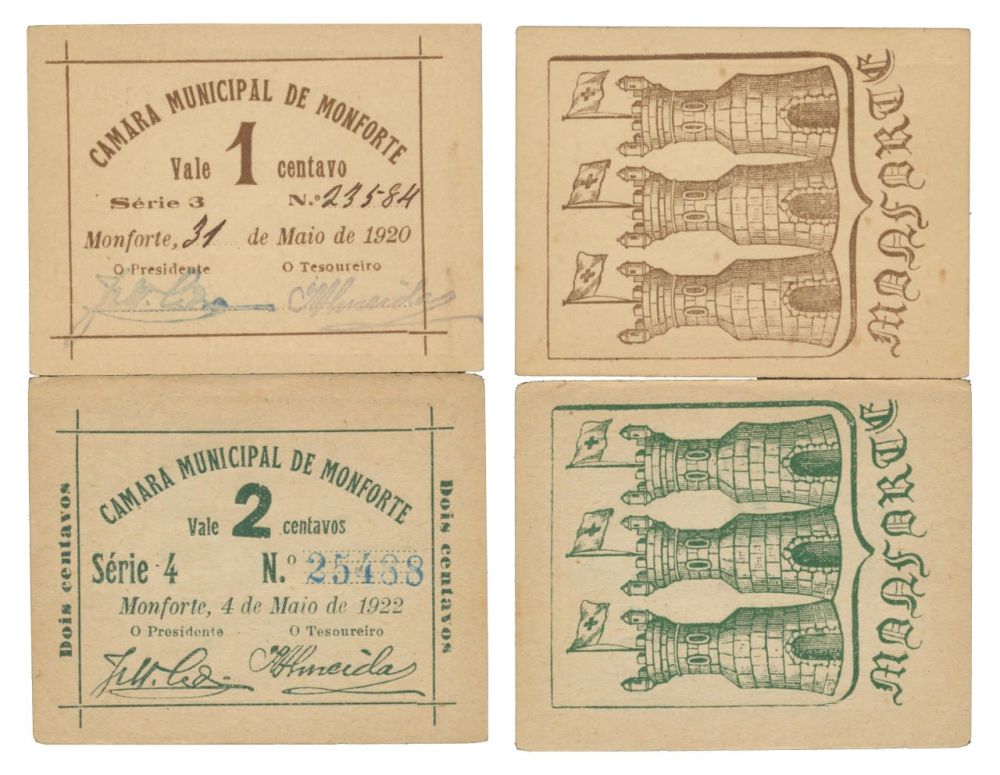 Cédula - 2 expl. Monforte 1, 2 Centavos 1920/1922
