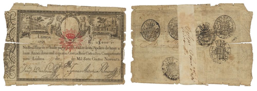 PAPEL. 2$400 Réis 1798. Nº 221226. C/ carimbo D. Pedro IV. AMA 22P. REG