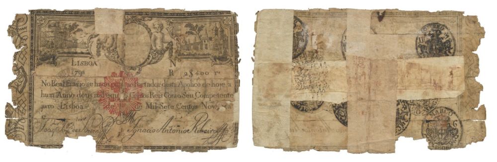 PAPEL. 2$400 Réis 1798, c/ carimbo D. Miguel I. AMA 22M. REG.