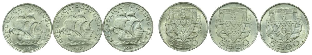 República - 3 moedas 5$00 1934-1948