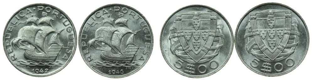 Repúbllica - 2 moedas 5$00 1942, 1946