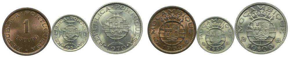 Moçambique - 3 moedas 1$, 2$5, 10$ 1954-1970